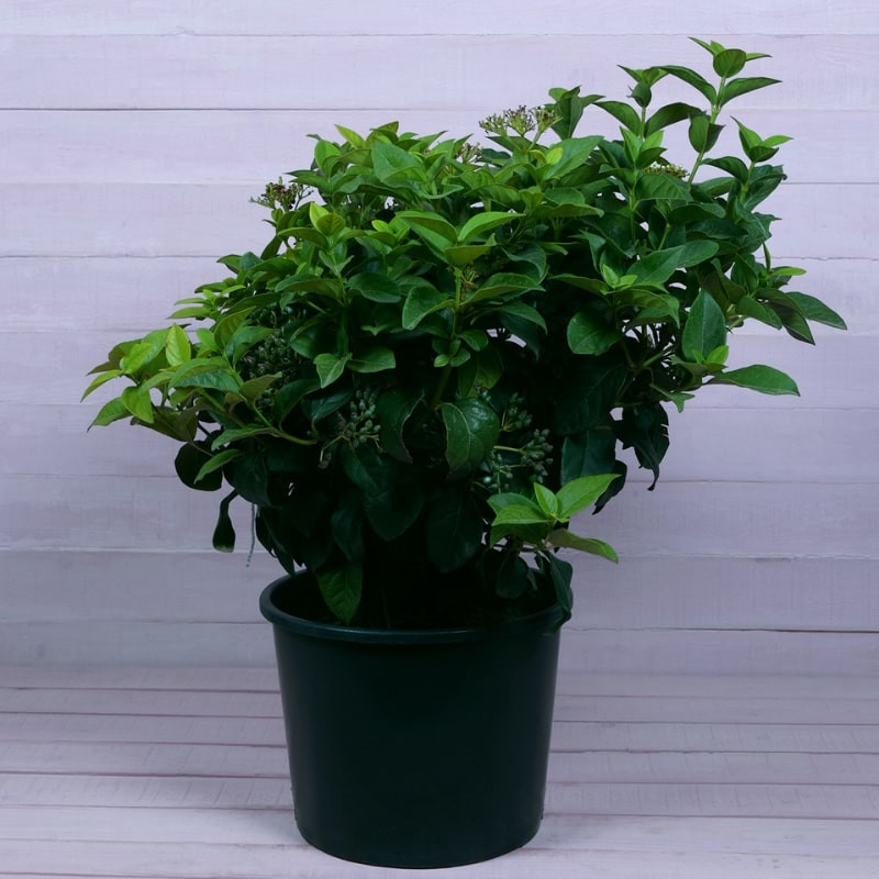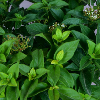 Communément appelé Laurier-tin, le Viburnum tinus est un arbuste au port conique et aux grandes feuilles, de forme ovale et de couleur vert luisant. C’est au cours de sa longue et abondante floraison parfumée qu’il va produire des petites fleurs blanches réunies en corymbes et qui forment à l’extrémité des tiges, des bouquets denses.